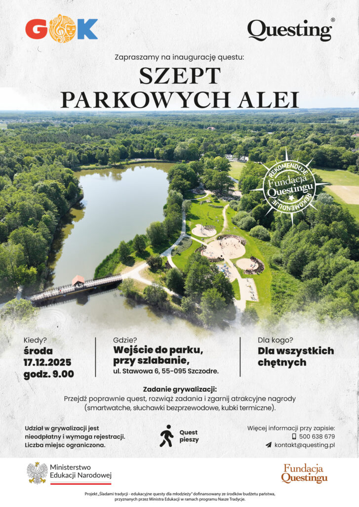 W środę, 17 grudnia, o godzinie 9:00, z parkingu w Parku Szczodrem rozpocznie się inauguracja nowego questu “Szept parkowych alei” w Szczodrem (gmina Długołęka).
