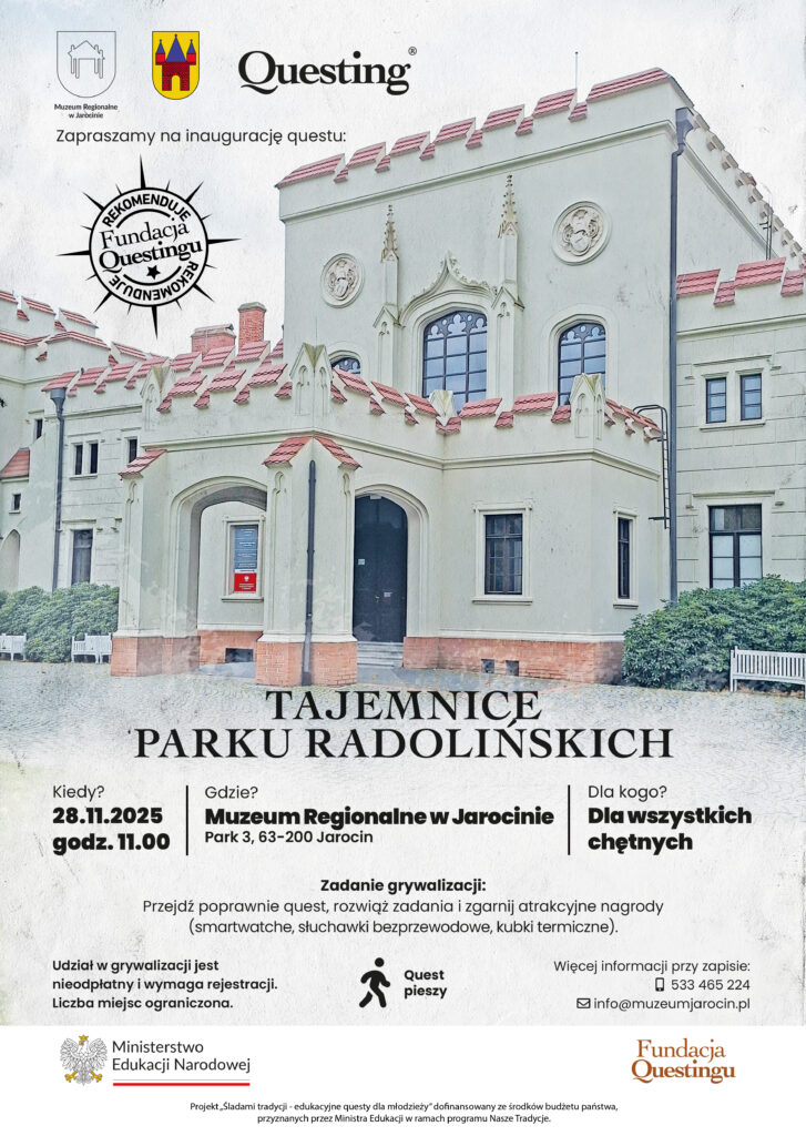 – Park Radolińskich to miejsce, w którym warstwy historii i lokalnych tradycji przenikają się na każdym kroku – mówi Klaudia Cieślak z Muzeum Regionalnego w Jarocinie. – Quest pokazuje, jak bogate jest to dziedzictwo i jak wiele można dostrzec dzięki uważnej obserwacji przestrzeni.