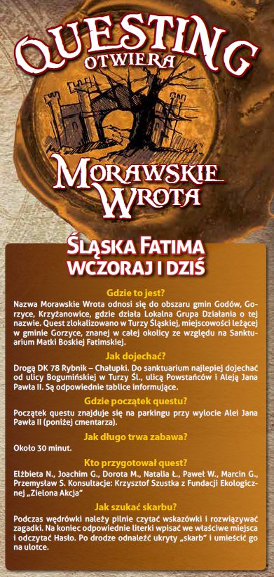 Podczas wędrówki należy uważnie czytać wskazówki i rozwiązywać zagadki. Zebrane liczby i cyfry będą kluczem do odnalezienia „skarbu” w postaci pieczęci. Życzymy udanej zabawy!
