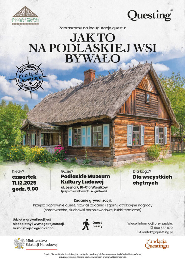 W czwartek, 11 grudnia, o godzinie 9:00, w Podlaskim Muzeum Kultury Ludowej (ul. Leśna 7, Wasilków) rozpocznie się inauguracja nowego questu w województwie podlaskim.