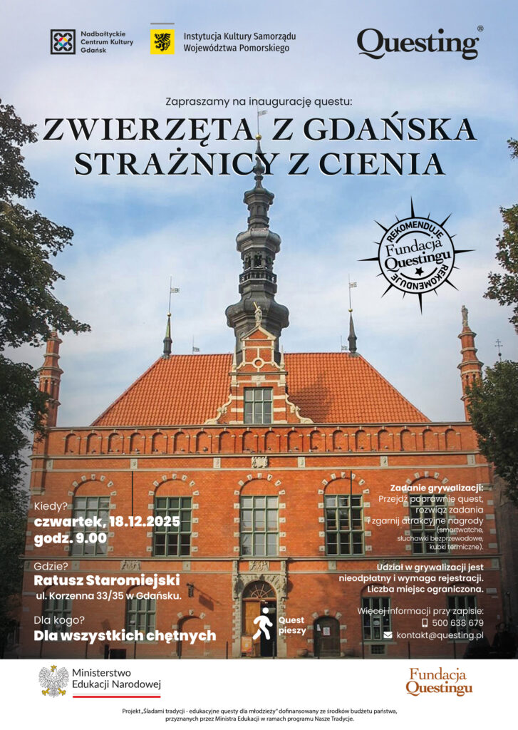 W czwartek, 18. grudnia, o godzinie 9.00, w Ratuszu Staromiejskim (ul. Korzenna 33/35) rozpocznie się inauguracja najnowszego questu: „Zwierzęta Gdańska – strażnicy z cienia”. Uczestnicy zabawy spojrzą na miasto z zupełnie nowej perspektywy, poznają historie zaklęte w budynkach i powalczą o atrakcyjne nagrody.